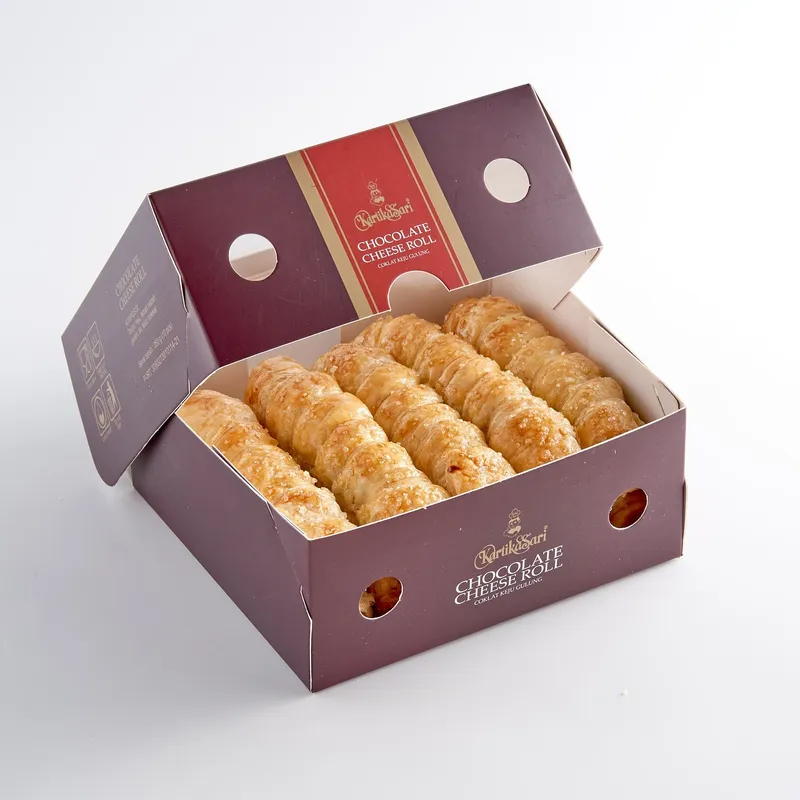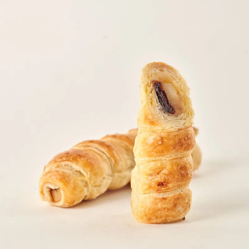 Kelezatan klasik dalam balutan pastry renyah. Rasa cokelat yang manis namun sedikit pahit berpadu harmonis dengan gurihnya keju, menciptakan rasa yang seimbang dan tak terlupakan di setiap gigitan.